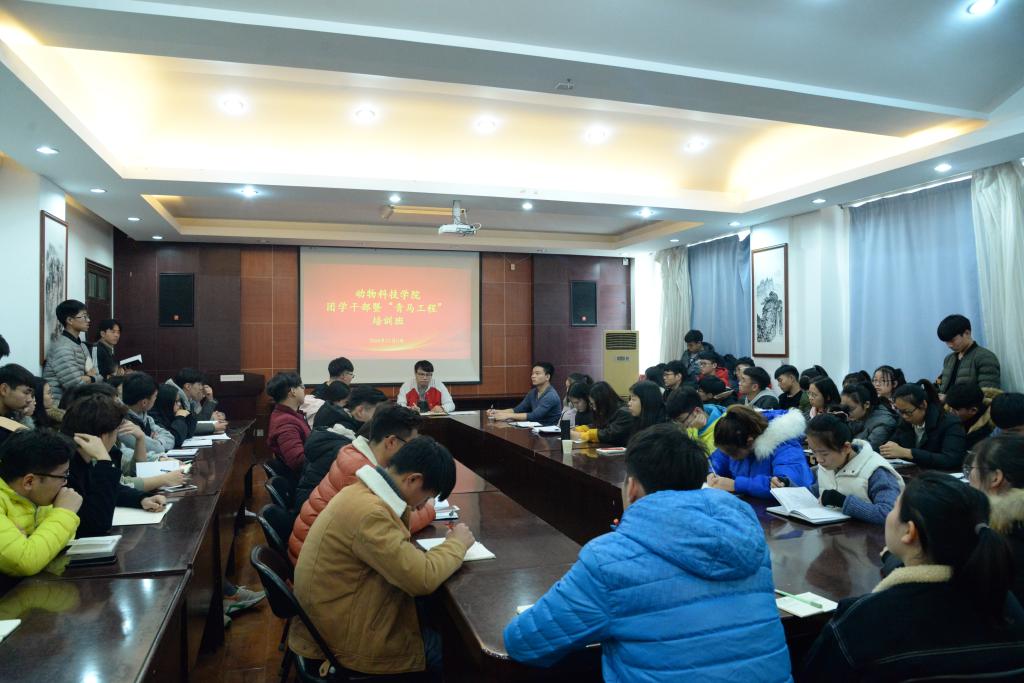 按照动物科技学院2018年团学干部培训暨“青马工程”培训方案,12月6日,动物科技学院团委副书记邢晓辉为全体学员讲授《动物科技学院团委学生会工作制度》。