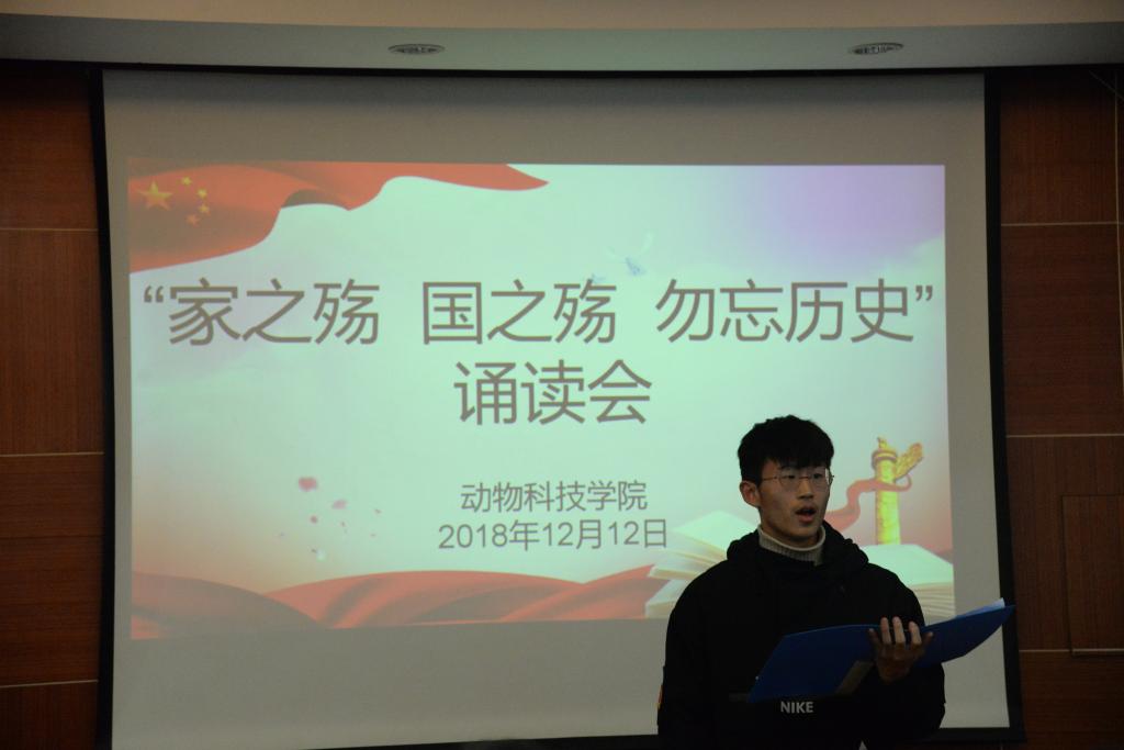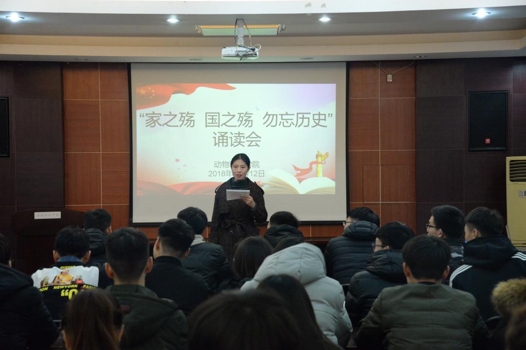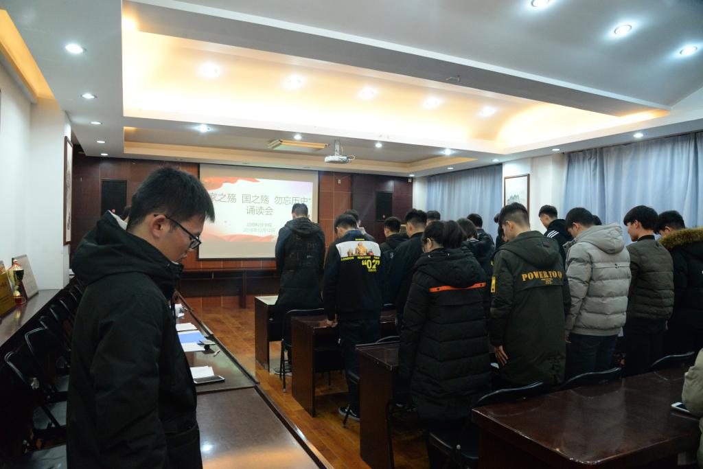 在我国第五个国家公祭日到来之际,为营造牢记历史、不忘过去、珍爱和平的浓厚氛围,我院举行“家之殇 国之殇 勿忘历史”诵读会,50余名学生代表参加。