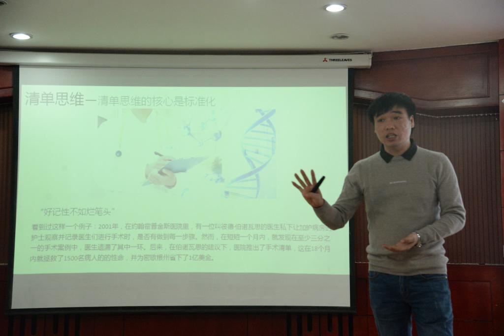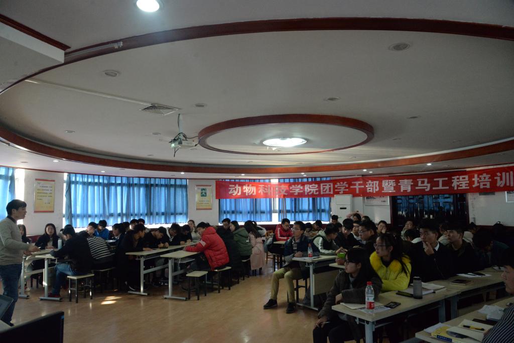 按照动物科技学院2018年团学干部培训暨“青马工程”培训方案,2018年12月16日,动物科技学院邀请上市企业“天康生物”的专业讲师为全体学生讲授“思维清单”和“如何提高团队凝聚力”。
