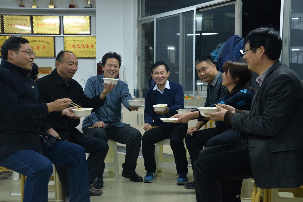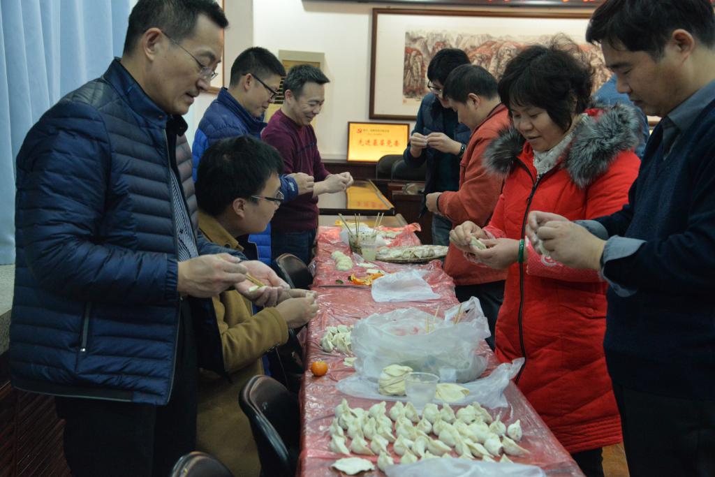 联欢现场,老师们自愿结合、分工协作,各显其能,包出形状各异、馅大皮薄的饺子,整个活动中,大家共同包饺子、话家常,始终洋溢着浓浓的节日氛围,随着一盘盘热乎乎的饺子出锅,联欢活动也到达了高潮,大家在紧张的工作之余享受了轻松和快乐,感受了传统文化的独特魅力,通过包饺子活动,所有人在一起动手合作,释放了平时工作压力,更重要的是加强了各教研室间的交流,增进了友谊。
