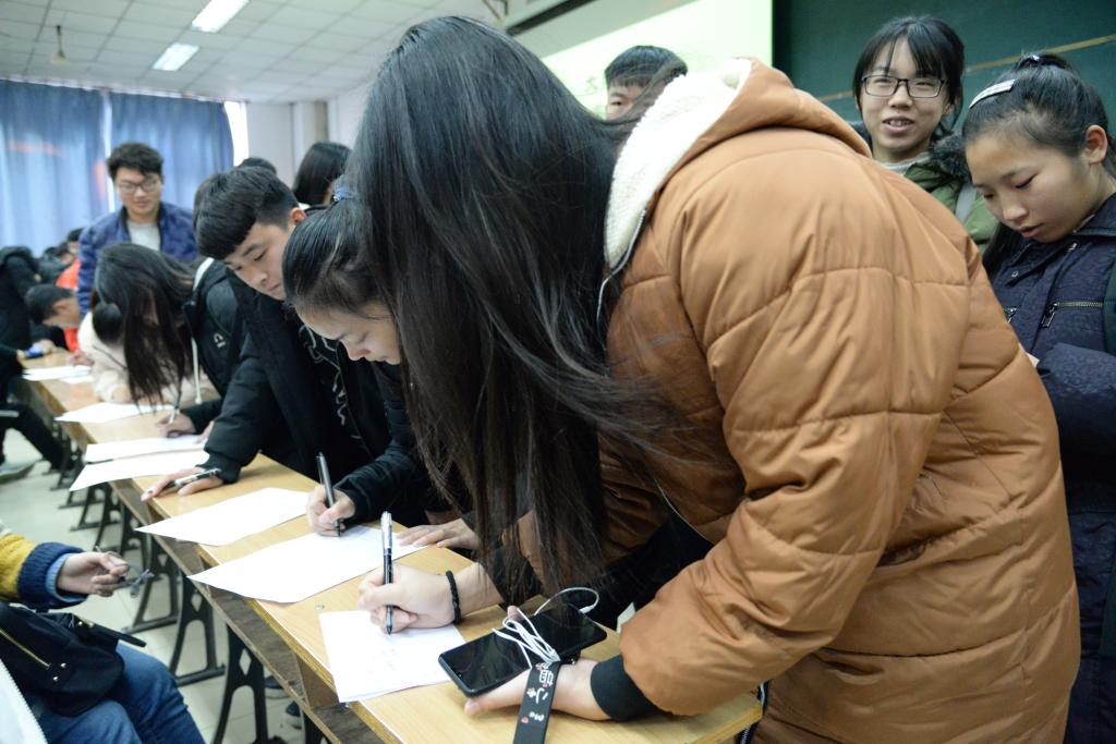 郑老师通过讲述诚信考试的内容、考试纪律和考试违纪作弊行为的认定和相关处理的规定。并结合各种因为考试作弊而被处分的例子,让同学们清楚的认识到了考试作弊的危害。大会最后,同学们在诚信考试承诺书上签字。