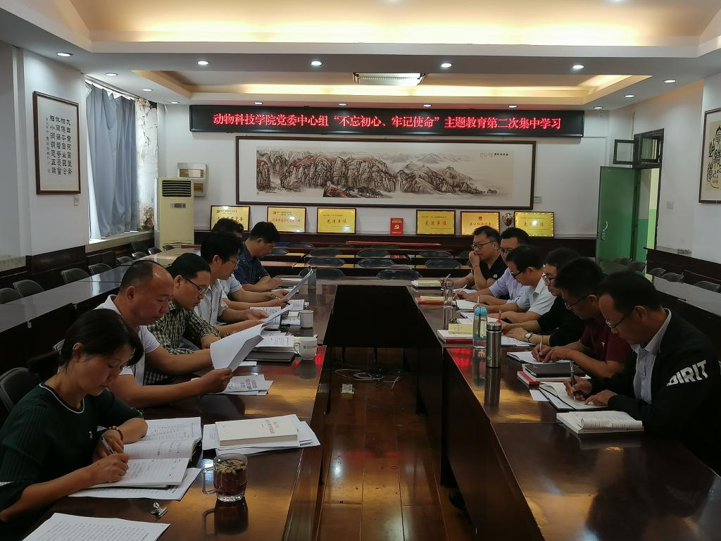 根据学校“不忘初心、牢记使命”主题教育部署安排,9月27日,动物科技学院党委理论学习中心组在实验楼E302会议室召开“不忘初心、牢记使命”主题教育第二次集中学习研讨会。党委书记郭东升、院长马金友、党委副书记陈松玲、副院长陈金山、副院长贺永惠、副院长葛亚明、党委委员张天安、党委委员张书响、各党支部书记参加了此次学习研讨会。