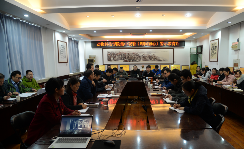 为巩固“不忘初心、牢记使命”主题教育成果,进一步筑牢党员干部拒腐防变思想防线,增强党员干部的宗旨观念和廉洁自律意识,11月26日,动物科技学院党委组织全院党员干部观看《叩问初心》警示教育片。
