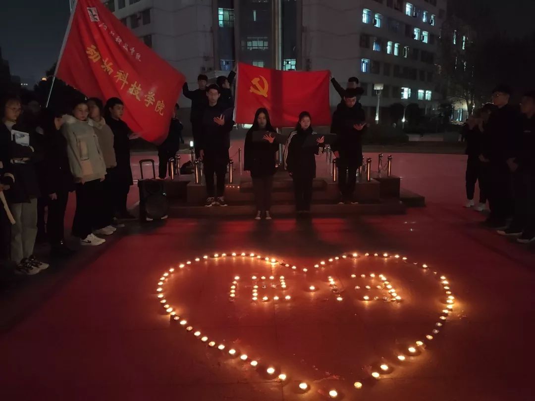 12月12日晚,第六个南京大屠杀死难者国家公祭日前夕,动物科技学院在致远广场举办“以史为鉴,照亮未来”为主题的“烛光祭”活动,同学们手托蜡烛,集体默哀,沉重悼念南京大屠杀死难者和所有在日本帝国主义侵华战争期间惨遭日本侵略者杀戮的死难者。活动最后,学生代表在鲜红党旗的见证下颂读《和平宣言》,以此表达动科学子对死难者的追念和对祖国的热爱、对和平的企盼。