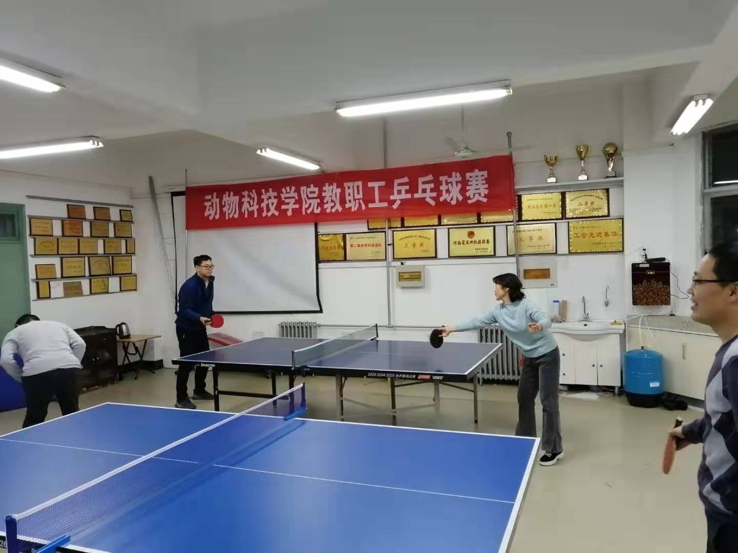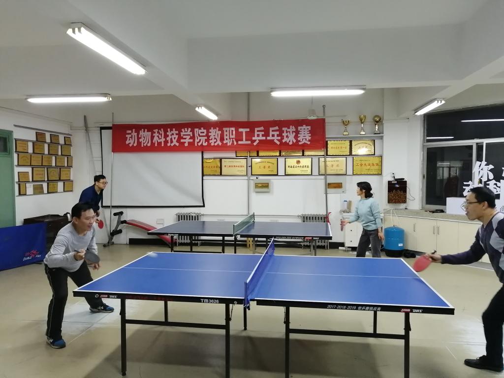 12月30至1月3日,动物科技学院教职工乒乓球比赛在实验楼E310举行,此次比赛采用团体对抗赛赛制,单循环比赛方式进行。全院共9个教工党支部40余名运动员参加了比赛。