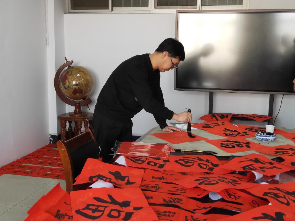 在2021年新春佳节即将来临之际,为营造祥和、欢乐、喜庆的节日氛围。1月5日上午动物科技学院在E407会议室开展了“迎新春,写春联,送春联”为主题的志愿服务活动。本次活动特别邀请陈永耀和王永强两位老师免费为全体学院教职工现场书写,发放春联,为教职工送上新春的祝福。