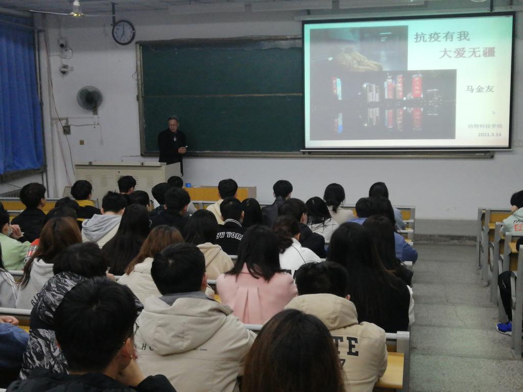 3月15日,动物科技学院院长马金友在1#1教室讲授春季学期开学第一课。