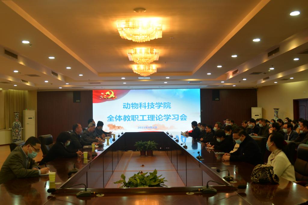 为扎实推进党史学习教育,根据上级要求和《河南科技学院党史学习教育工作方案》精神,4月1日,动物科技学院组织全体教师在行政楼206举行全体教职工理论学习会。会议由院党委书记郭东升主持。
