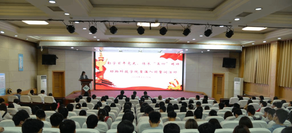 为庆祝建党一百周年,加强青年学生党史学习教育,纪念“五四”运动,弘扬“五四”精神,4月28日,动物科技学院在图教201举行“勤学百年党史,传承五四精神”重温入团誓词活动。团委书记张书响,团委副书记刘璐、张帅鹏以及团员代表220余人参加。