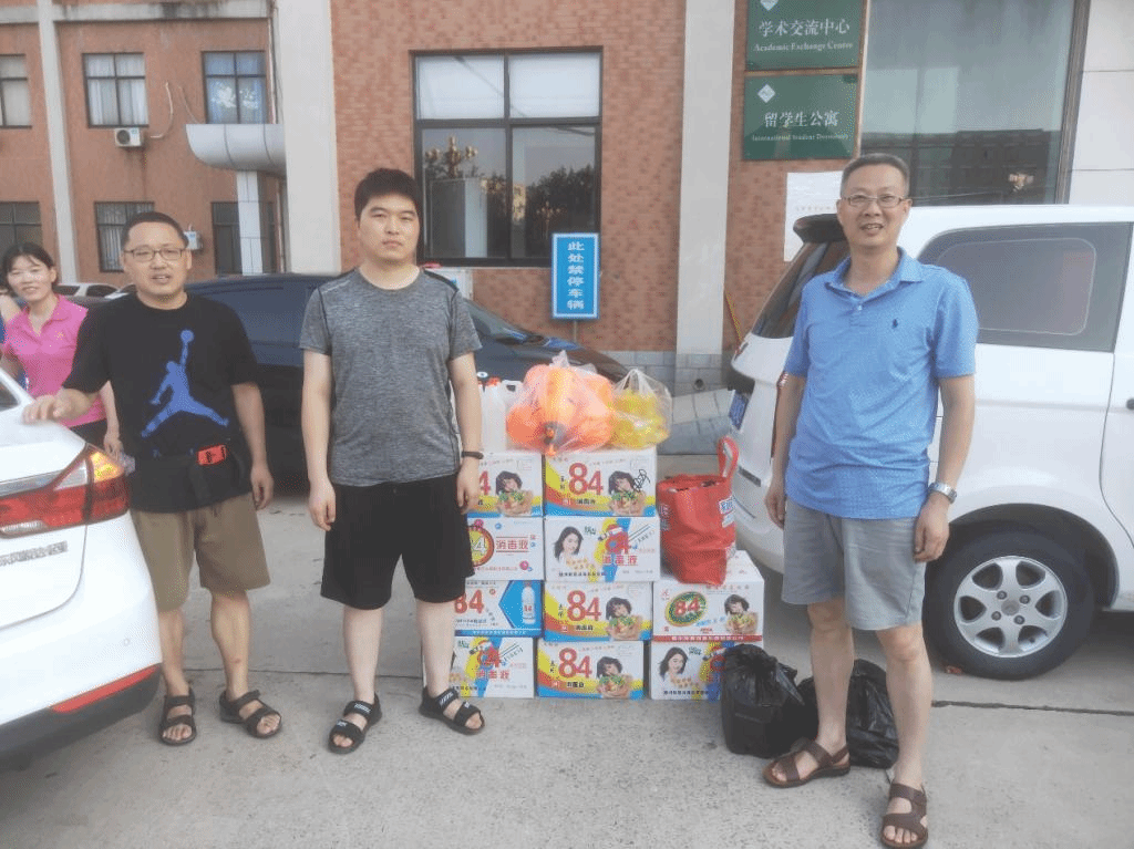 在购买消杀用品时才发现新乡市区已经售罄,身在新乡工作的周慧超同学打听到获嘉还有一些消杀用品,于是班级同学商量后,他主动请缨驱车赶往获嘉去购买。在获嘉也是辗转多家药店超市才凑集了一批杀用品,立马驱车赶回母校。