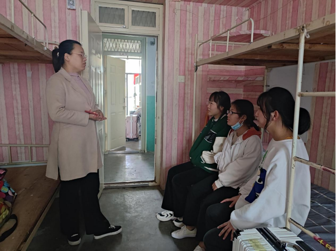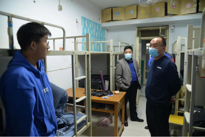 走访过程中,学院领导老师对新生的生活、学习、入校感受等进行了仔细的询问,对新生的疑惑与问题进行了耐心解答,并反复叮嘱学生在疫情防控期间做好个人防护,保持宿舍卫生环境清洁,同时要提高并增强安全意识如宿舍用电安全、电信防诈骗等,鼓励新生及时调整状态,合理规划时间,养成良好的学习和生活习惯,以崭新的精神面貌投入到学习生活当中。