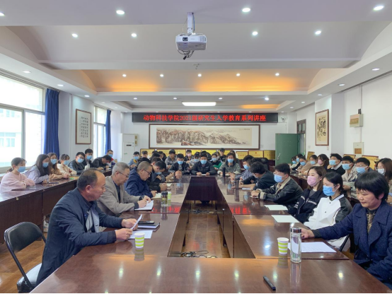10月21日下午15:00,动物科技学院在E302会议室举行2021级研究生新生线下见面会暨研究生入学系列教育活动。学院党委书记郭东升,院长马金友,副院长贺永惠,研究生秘书徐彦召,研究生科研平台管理主任魏小兵以及全体2021级研究生出席本次活动。会议由贺永惠主持。