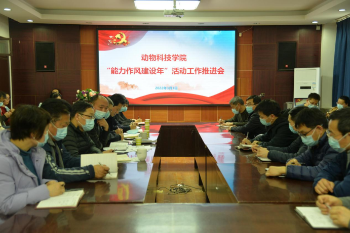 3月3日下午,动物科技学院在E302会议室召开“能力作风建设年”活动工作推进会,学院领导班子及全体教职工参加会议。会议由院党委书记郭东升主持。