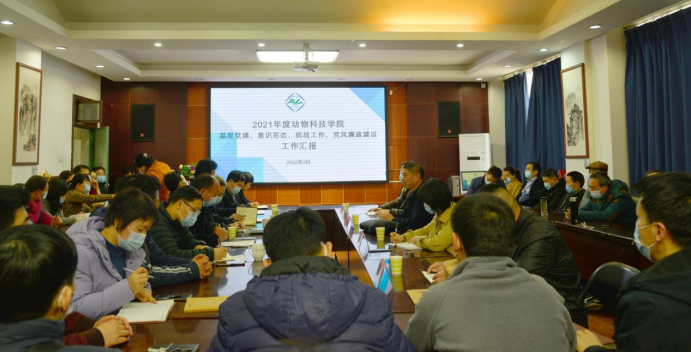 3月3日下午,动物科技学院在E302会议室召开2021年度处级领导班子和领导干部考核会。党校副校长赵长春、校团委副书记栗宁、人事处副处长王永刚、校纪委纪检监察室副主任李绘征出席会议。学院领导班子、全体教职工参加会议,会议由赵长春主持。