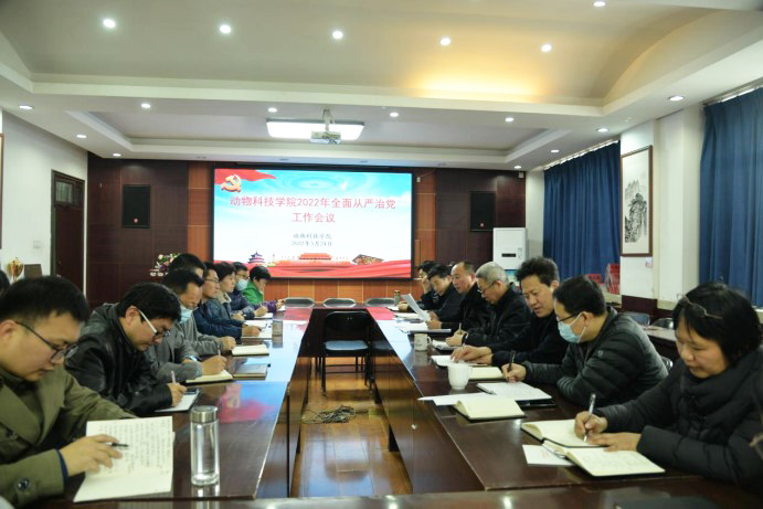 3月24日下午,动物科技学院在E302会议室召开2022年全面从严治党工作会议,学院党政班子成员、各党支部书记、办公室及团委全体人员参加会议。会议由学院党委书记郭东升主持。