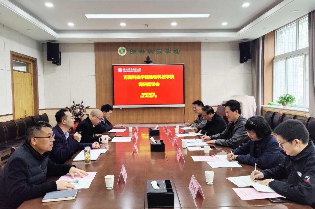 3月27日,动物科技学院副院长陈金山、副院长贺永惠、苗志国、刘长忠、谢红兵、滕战伟一行6人赴西北农林科技大学动物科技学院考察学习。西北农林科技大学动物科技学院院长姜雨、副院长杨小军等参加会议,会议由姜雨主持。