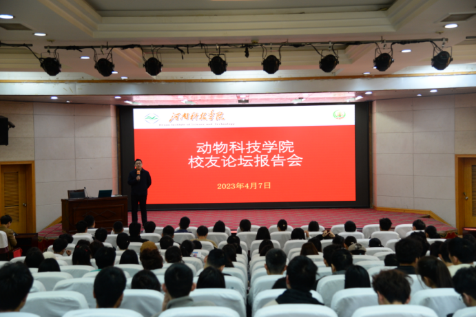 4月7日上午,动物科技学院在图教201举办校友论坛报告会,学院副院长葛亚明、学院1999届校友河南艾格多科技有限公司总裁任振东、学院2002届校友河南艾格多科技有限公司人资总监孙爱平以及学生代表200余人参加此次活动。