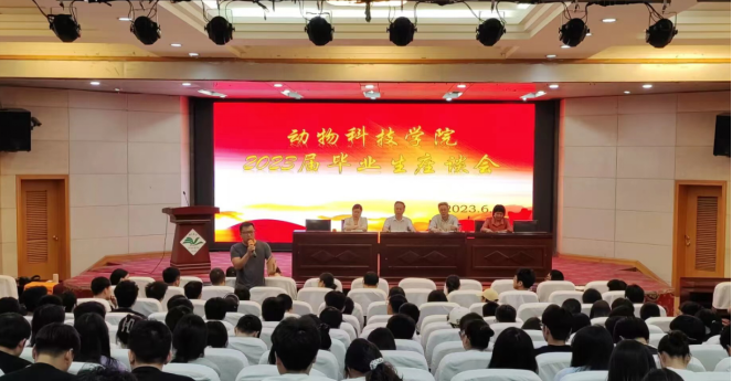 6月8日上午,动物科技学院在图教201召开了2023届毕业生座谈会,学院领导班子成员、教师代表及团委辅导员出席会议,毕业生代表170余人参加会议,会议由院党委副书记朱黎娅主持。