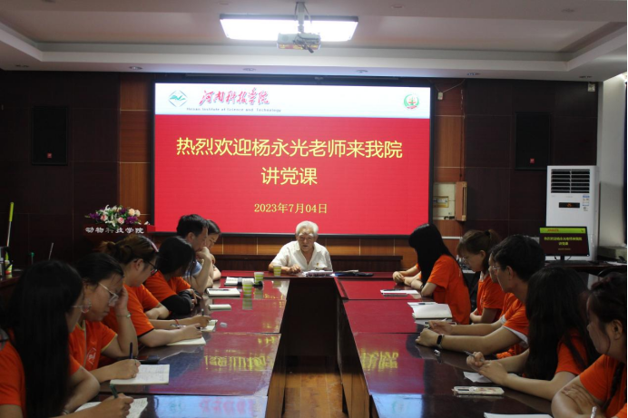 为深入落实习近平总书记重要指示精神,从红色文化、红色基因中汲取前行力量,学院特邀请92岁高龄、入党40年、离休31年的原科研处处长,国家科学技术进步二等奖、国家中青年有突出贡献专家、河南省优秀专家、省劳模杨永光教授为学院师生上党课。杨永光教授从自己的求学、读书、做研究等心路历程,结合党的二十大精神,用心、用情地分享了他的红色故事,展现了一名老党员教师的责任与担当,为学院师生上了一堂生动的党课。并在最后寄语青年学生要学好专业知识,脚踏实地,抓牢基础,为祖国为民族作出贡献。