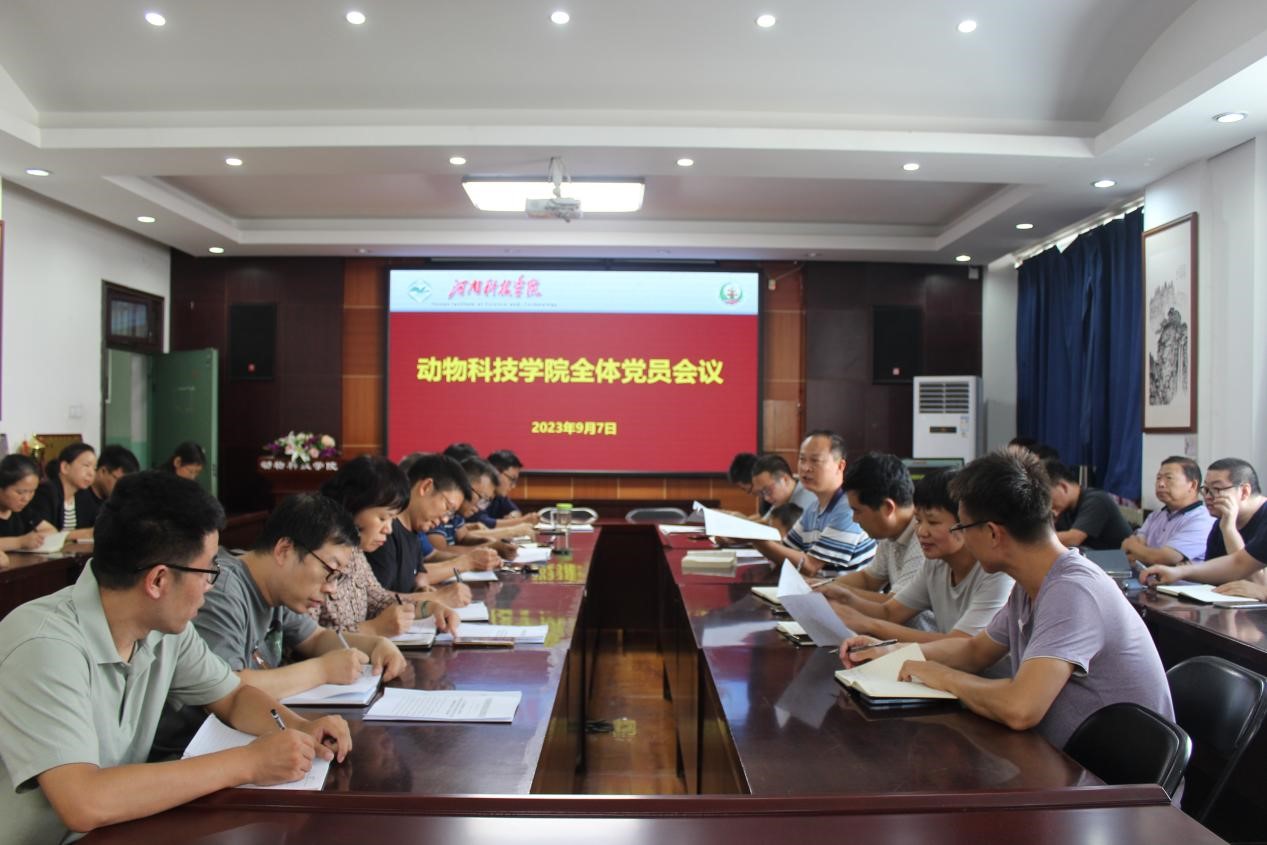 9月7日下午,动物科技学院在E302会议室召开全体党员大会,学院党政领导班子成员及全体党员参加会议,会议由院党委书记胡付广主持。