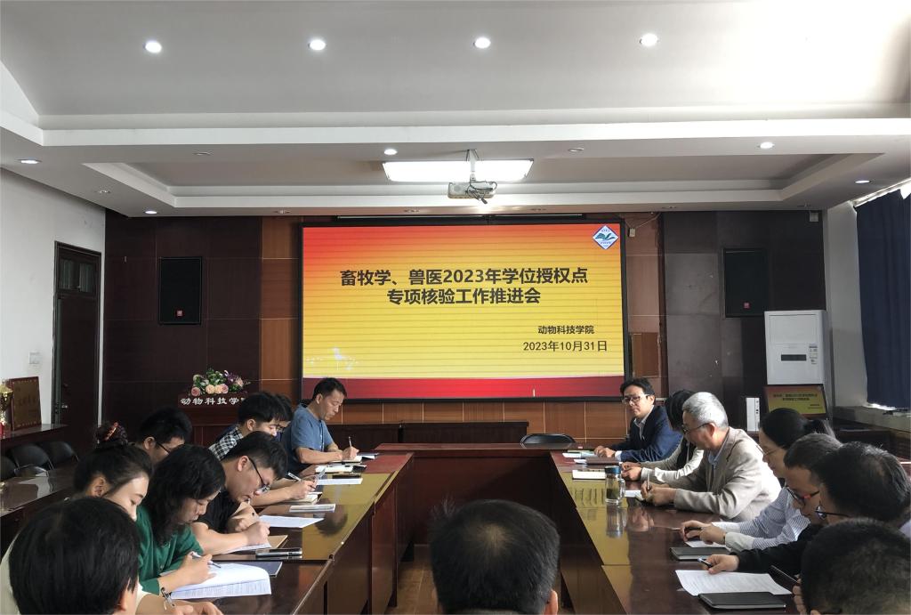 10月31日上午,动物科技学院在E302会议室召开了畜牧学、兽医2023年学位授权点专项核验工作推进会,院长马金友,副院长贺永惠、徐彦召,各教研室主任及办公室秘书等参加大会,会议由徐彦召主持。