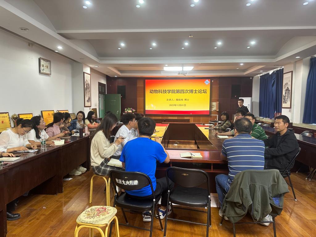 11月1日下午,动物科技学院第四次博士论坛在E302会议室举办。此次论坛由滕战伟博士主讲,会议由副院长贺永惠主持。动物科技学院的青年博士参加了此次博士论坛。