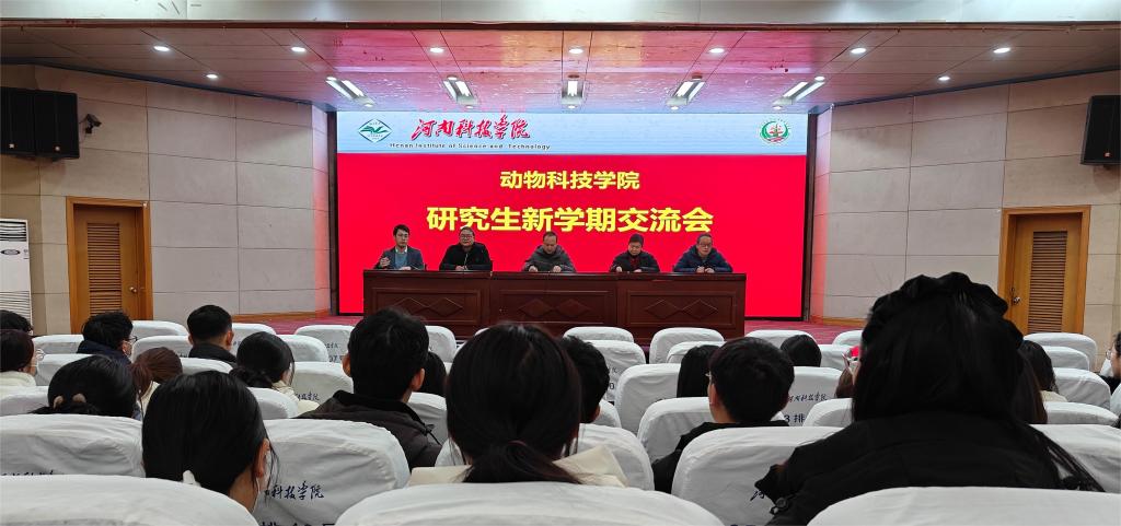 2月27日晚,动物科技学院在图教201会议室召开了研究生新学期座谈会,院党委书记胡付广、副书记朱黎娅、副院长徐彦召、研究生支部书记魏小兵、研究生秘书孙华润及全体在校研究生参加会议。