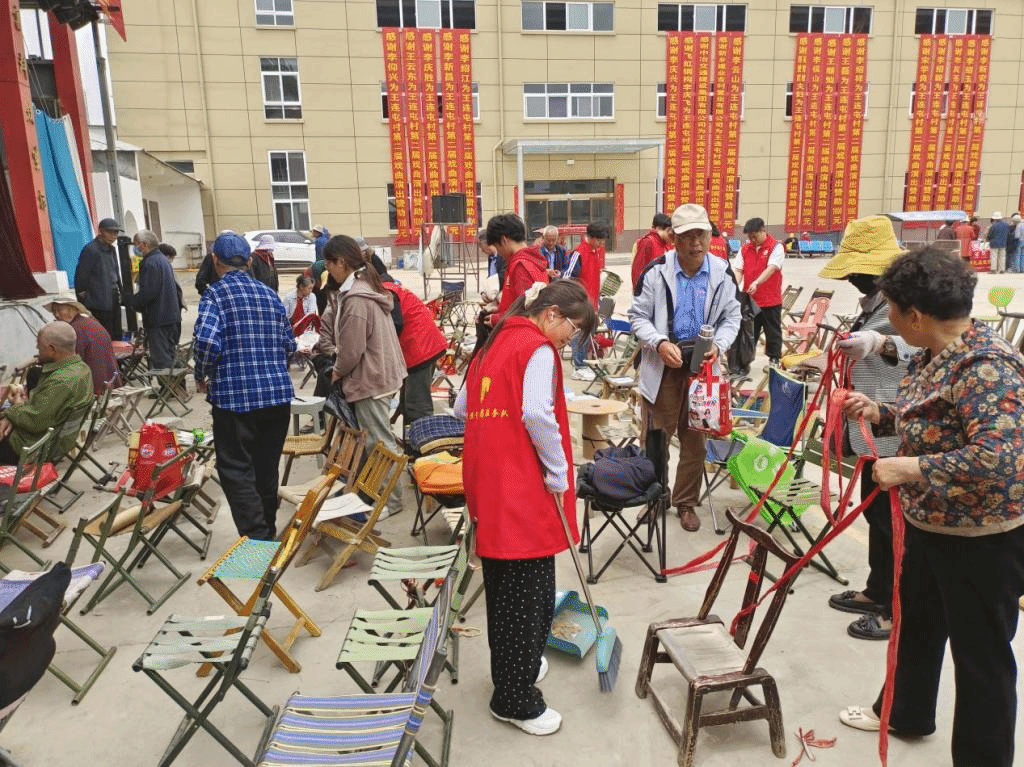 戏曲表演结束后学生志愿者对观看场地卫生进行打扫