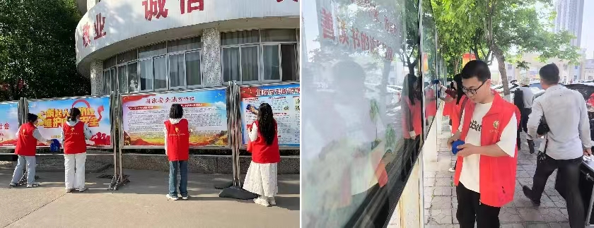 4月26日,动物科技学院团员志愿者对学校实验楼、1号教学楼、零号楼、西操场等地的宣传栏进行清洁打扫,并借此机会学习宣传五四青年精神,以实际行动践行社会主义核心价值观,激励青年学生在实践劳动的课堂中“受教育、长才干、作贡献”,以服务和奉献奏响青年同学奋进的乐章。