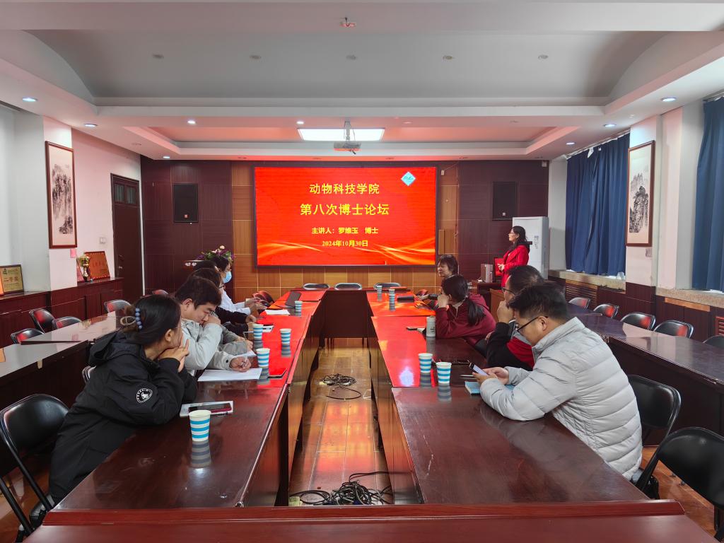10月30日下午,动物科技学院第八次博士论坛在E302会议室举办。此次论坛由动物科技学院罗维玉老师主讲,动物科技学院的青年博士及部分国基申报教师参加了此次博士论坛。会议由动物科技学院副院长贺永惠主持。
