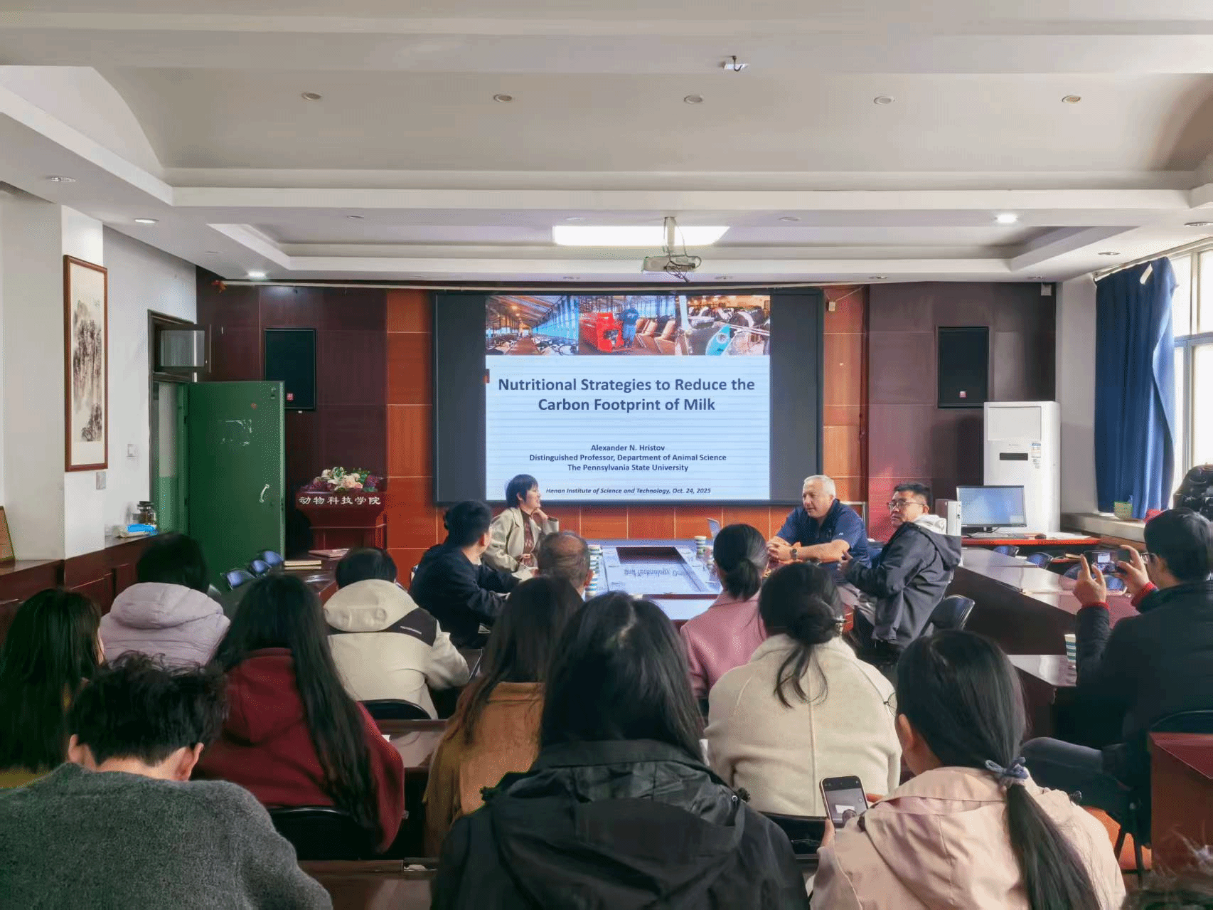 为促进国际学术交流,拓展师生科研视野,10月24日上午,美国宾夕法尼亚州立大学动物科学系乳品营养学杰出教授Alexander Nikolov Hristo应我院邀请,莅临我校动物科技学院进行访问交流。交流活动在学院302会议室举行,由副院长贺永惠教授主持,动物科技学院部分青年教师及研究生共同参加了此次学术活动。