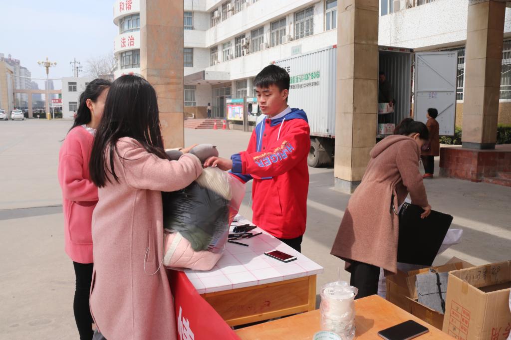 活动中,学生们纷纷来到现场,将自己提前准备打包好的闲置的的衣物、书籍、学习用具等一一捐赠出来,交给工作人员。工作人员收到衣物后,登记入册赠者的姓名、院系班级以及捐赠衣物的类型,场面温馨,气氛融洽。活动结束后,将整理好的衣物通过公益中心送给需要的人。