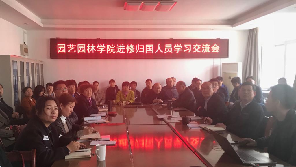 3月28日,园艺园林学院在实验楼B316会议室举行进修归国人员学习交流会,听取2018年度国外访学教师的汇报。会议由学院党委书记郜庆炉主持。