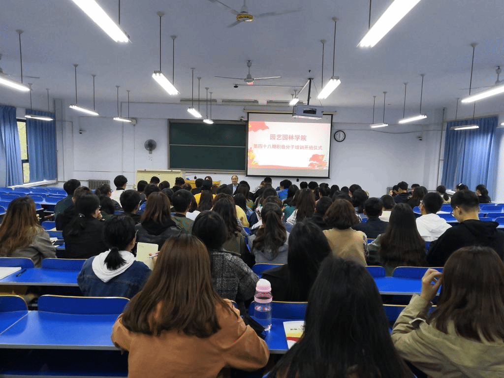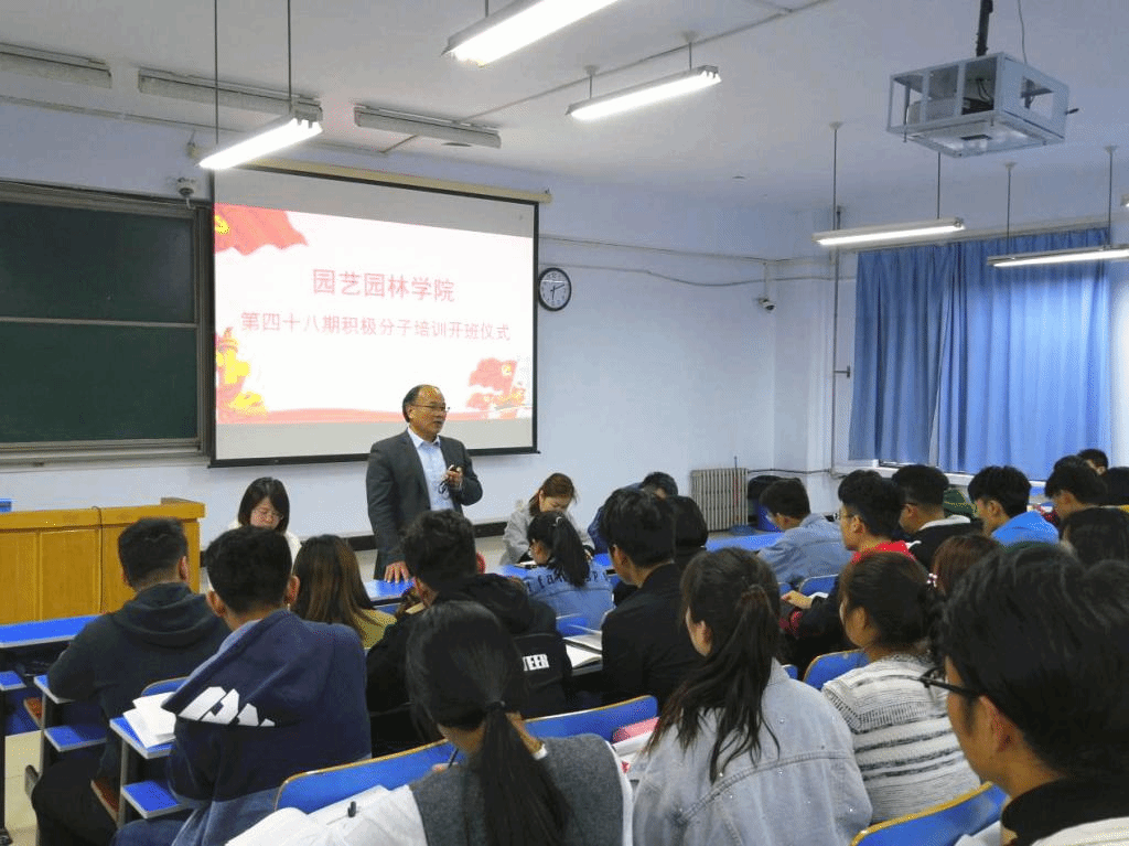 4月11日晚点,园艺园林学院在4合三教室进行了第48期积极分子开班仪式。学院党委书记郜庆炉、副书记朱黎娅、全体辅导员老师以及90余名入党积极分子共同参加仪式,会议由辅导员赵艳芳老师主持。