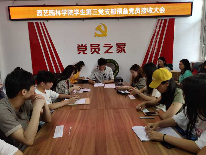 5月31日,园艺园林学院分别在实验楼B106、B316会议室召开了园艺园林学院学生第一、二、三党支部预备党员接收大会。学院辅导员、学生党支部书记以及支部全体学生党员参加了会议。会议由各学生党支部书记主持。