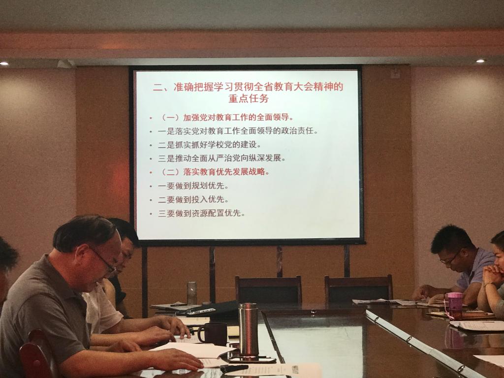 郜庆炉介绍了全省教育大会的基本情况,阐述大会的特点、重要意义,新时代推进全省教育现代化、建设教育强省、办好人民满意的教育的重点任务;强调这次会议是省委省政府在全省经济社会进入高质量发展新阶段、教育事业发展进入加快推进现代化、建设教育强省的新时期召开的一次十分重要的会议,时机关键、意义重大、影响深远。