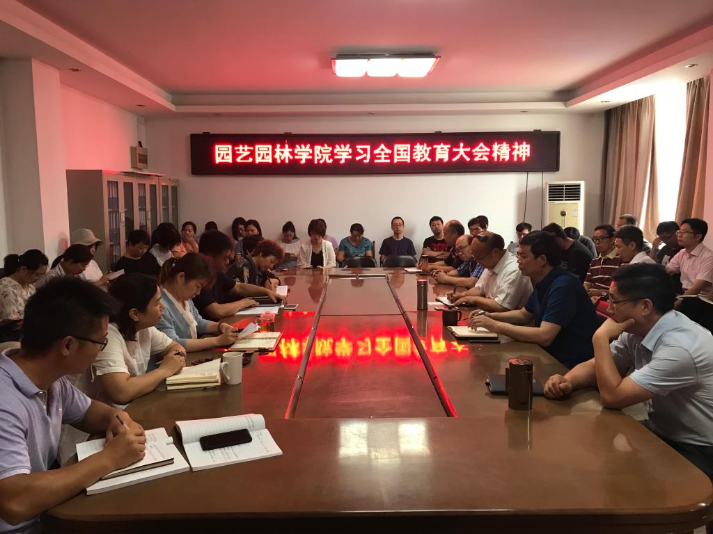 6月20日下午,园艺园林学院于316会议室集中学习全国教育大会精神,学院党政领导以及全体教职工70余人参加了会议,会议由党委书记郜庆炉主持。