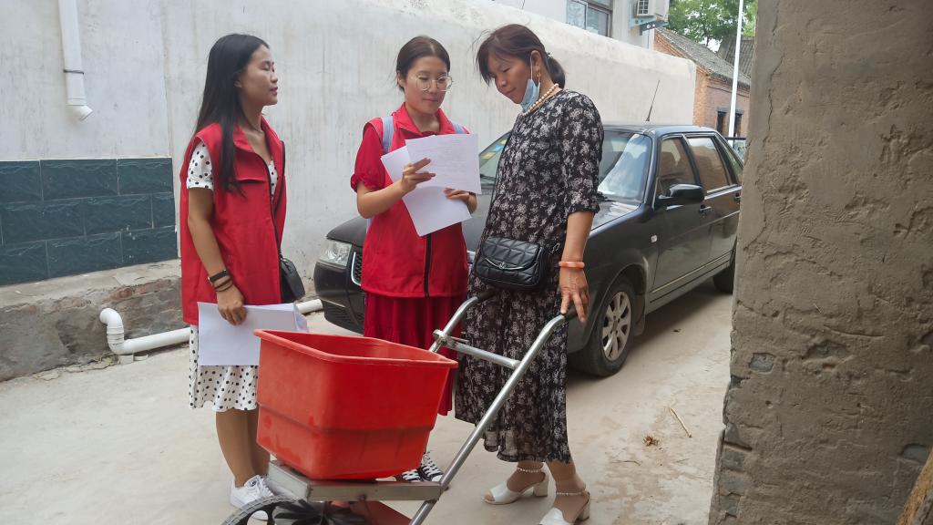 烈日炎炎,挡不住志愿者们一颗服务的心。车刚抵达,他们就纷纷来到大街小巷来,就暑假防溺水的措施和溺水时的自救方法进行挨家挨户的走访宣讲。他们分发宣传页,普及溺亡知识,提醒家长们在暑假期间照看好自己家的孩子,注意外出安全。他们走访交流,耐心细致地为家长讲解孩子们平时在家应该注意远离哪些具有溺亡危险的地区,一定看护好家中的孩子。