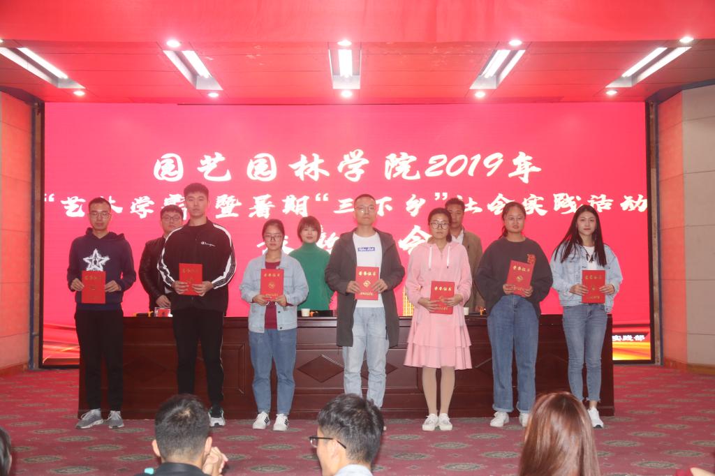 随后,贺松涛老师又宣读《关于表彰2019暑期“三下乡”社会实践的决定》,并为“聚焦乡村振兴,规划美丽家园”实践团队、园艺182郑萍萍、城规181袁志雨等获得“优秀实践团队”、“优秀通讯员”、“优秀实践队员”的团队和个人颁奖。接着,优秀实践团队负责人代表、优秀通讯员代表和优秀实践队员代表陆续上台发言,分享自己的实践感悟,鼓励同学们积极参与社会实践,提升实践技能。
