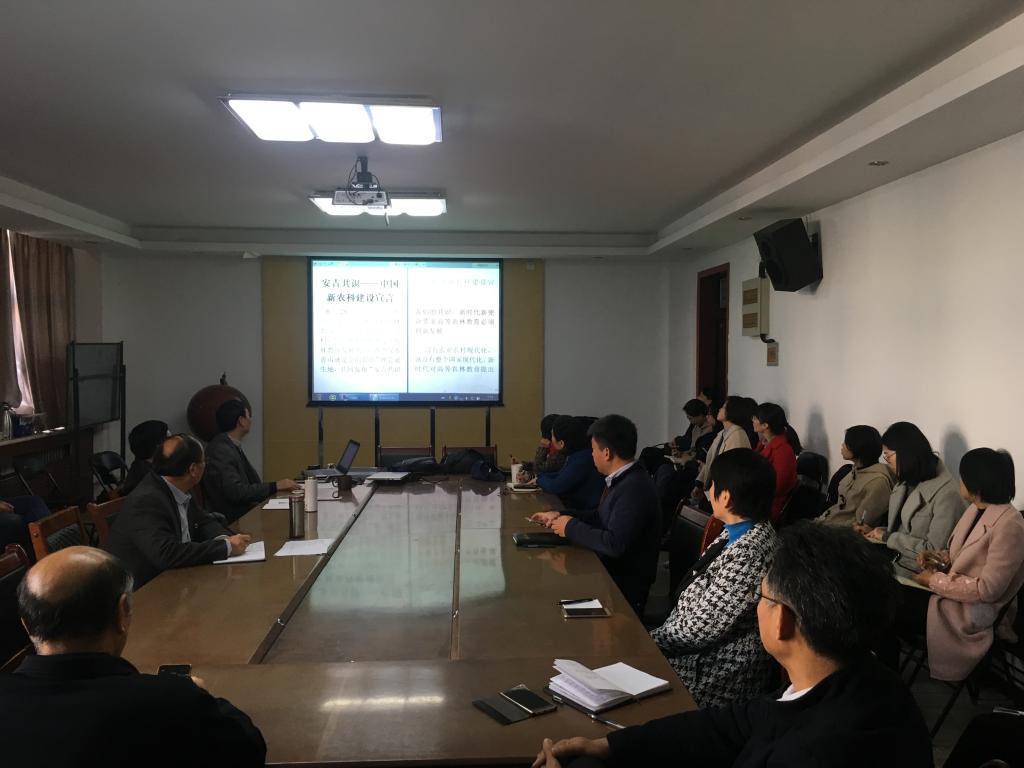 首先,周俊国讲解了“中国新农科建设宣言——《安吉共识》”和“学好总书记回信,加快新农科建设--新农科建设北大仓行动”报告(教育部高教司 吴岩),结合我院发展现状及农科专业现状,提出要以新农科建设为契机,对我院农科专业培养方案、授课内容及教学方法等方面进行改革。