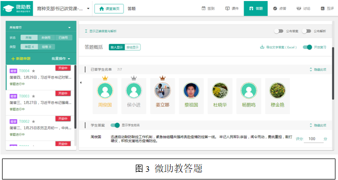 党课学习的主要内容是“习近平总书记关于新冠肺炎疫情防控工作系列讲话精神”材料汇编。具体形式:(1)每位教工党员提前自学“习近平总书记关于新冠肺炎疫情防控工作系列讲话精神”材料一月份的内容,摘抄笔记,上传微信群;(2)进微助教平台签到,答题(根据学习内容共提供4道简答题);(3)微信群讨论,每个人从自己的角度就如何做好防疫工作进行交流。
