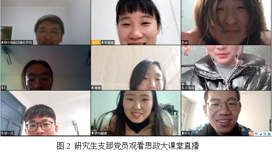 3月9日研究生党支部组织全体党员集中学习,观看思想政治大课堂。艾四林、秦宣、王炳林、冯秀军等四位教授结合“马克思主义基本原理概论”“毛泽东思想和中国特色社会主义理论体系概论”“中国近现代史纲要”“思想道德修养与法律基础”等课程,解读以习近平同志为核心的党中央关于疫情防控的决策部署,分析中国抗疫彰显的中国共产党领导和中国特色社会主义制度的显著优势。课后,各位党员进行了在线讨论,畅谈了观后感想。