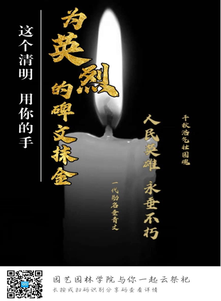 清明时节雨纷纷,英烈忠魂满乾坤。4月4日,清明之际,园艺园林学院全体师生通过线上祭奠,发起了对抗疫英烈以及逝去的同胞最深切的缅怀和悼念。
