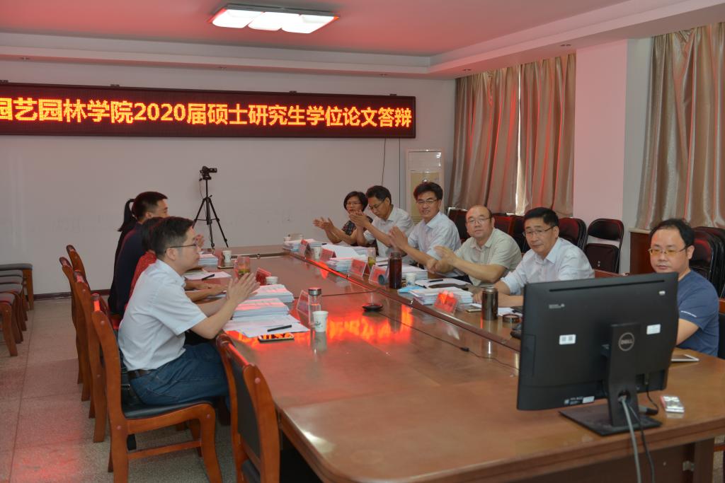 5月26日下午,园艺园林学院2020届硕士学位论文答辩会在院会议室B316举行,答辩委员会由7名专家评委组成,信阳农林学院副校长赵一鹏教授担任答辩委员会主席。