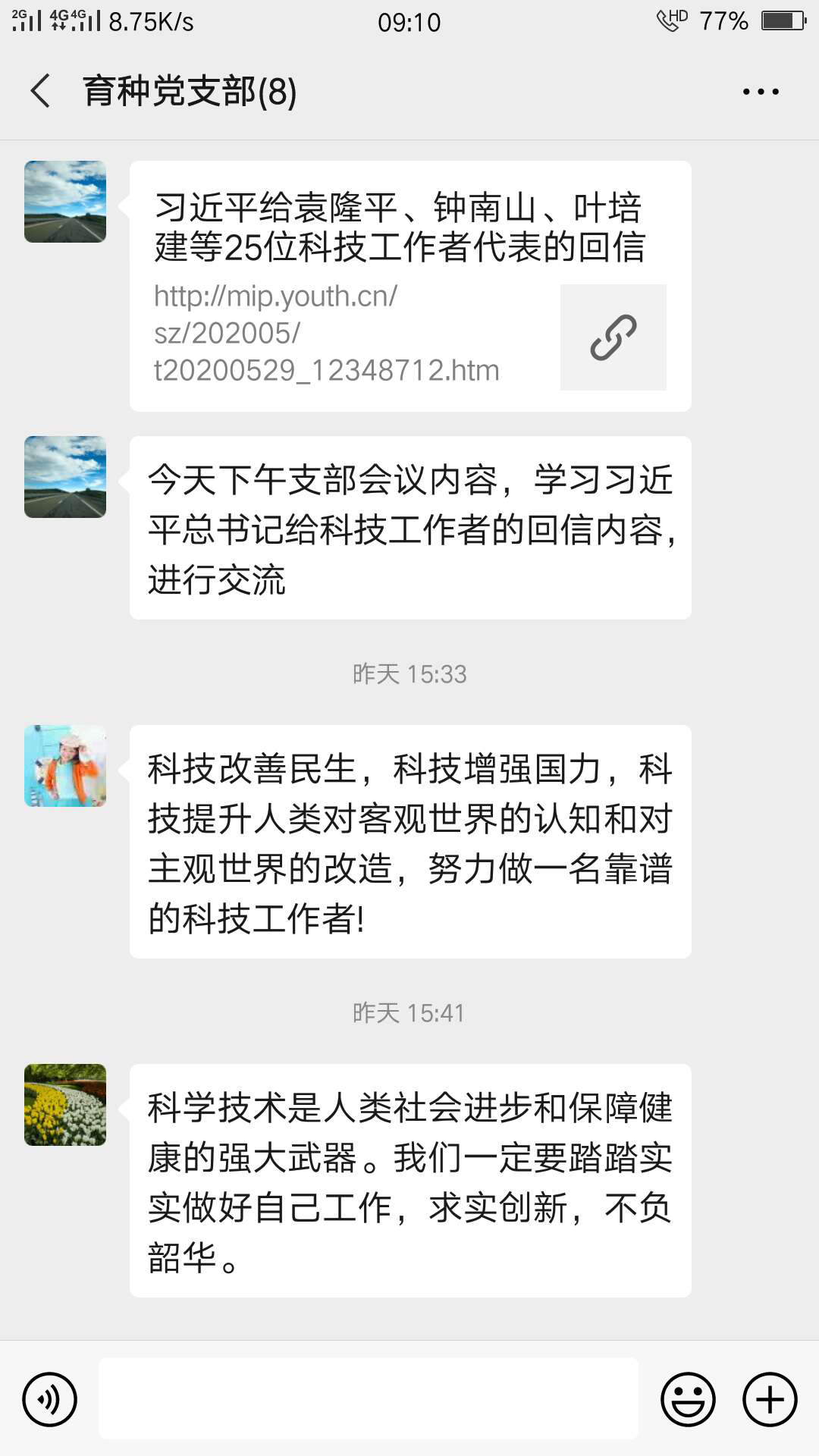 在第四个“全国科技工作者日”来临之际,习近平总书记给袁隆平、钟南山、叶培建等25位科技工作者代表回信,在全国各个科研单位引发热烈反响,园艺园林学院党委号召全院教工深刻学习领会习近平总书记回信精神。