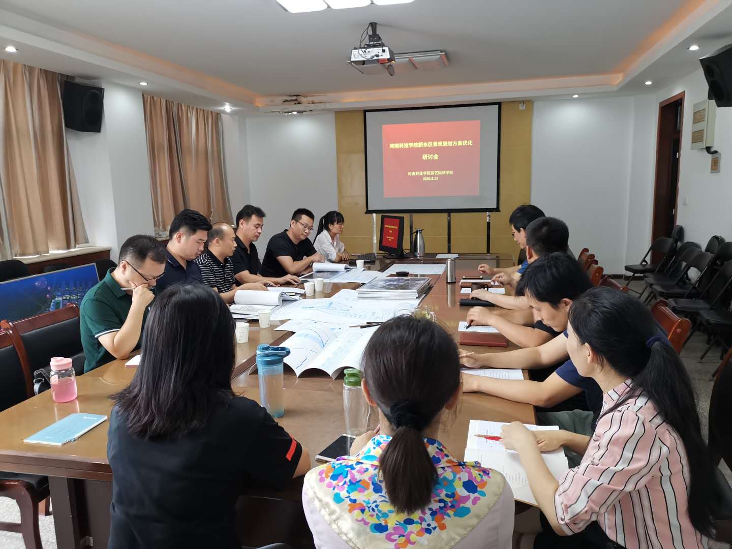 8月14日下午,河南科技学院在学院316会议室组织召开了河南科技学院新东区景观规划设计方案优化研讨会。会议邀请了人禾设计工程集团有限公司李志涛总经理、河南一荣景观设计有限公司刘振兴总经理及其资深设计人员共5人参加研讨。项目组总负责人园艺园林学院院长周俊国、党委书记郜庆炉、业务总负责人副院长张毅川以及方案组成员等参加了会议,会议由周俊国主持。