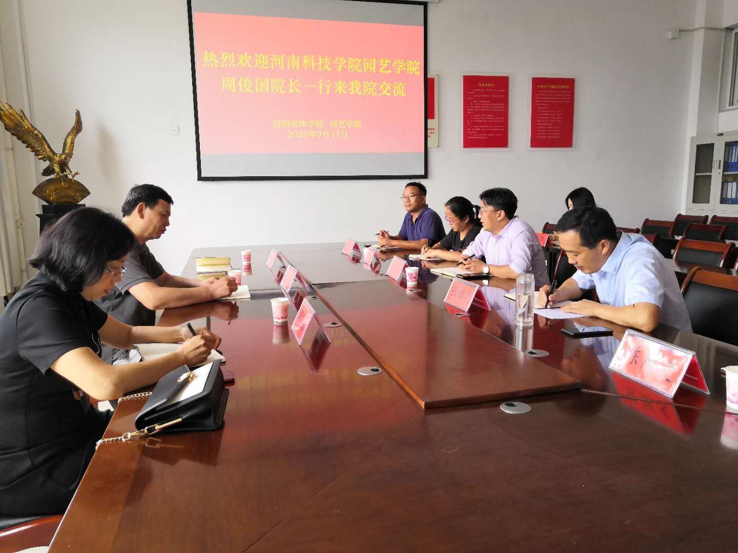此外,周俊国院长一行三人赴信阳农林学院,与园艺学院的班子成员和部分老师进行了座谈交流,就新农科园艺专业建设及教学科研合作等方面达成了多项合作意向。