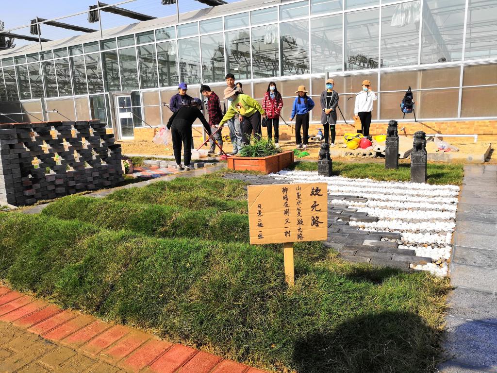 同学们被分为21个组,对学校新东区规划设计实训工厂中的21块露天场地进行工程实训。在短短的5天时间里,各小组通过“踏勘测量--方案设计--编制清单--场地放线--土方填挖--主景营造--细节处理--交付验收”等多个环节,团结协助、安全文明施工,展现了专业特色和风貌,将“黄土露天”的庭院“旧貌换新颜”。通过本次实习,同学们实践了专业知识,深入理解了园林工程项目的工艺与流程,完成了自己的第一处真实作品,收获了实践经历、团队友谊和专业自信。实习最后,指导教师还组织了“2020年园林工程营造大赛”的汇报与评奖环节,对优秀的小组和同学进行了表彰。