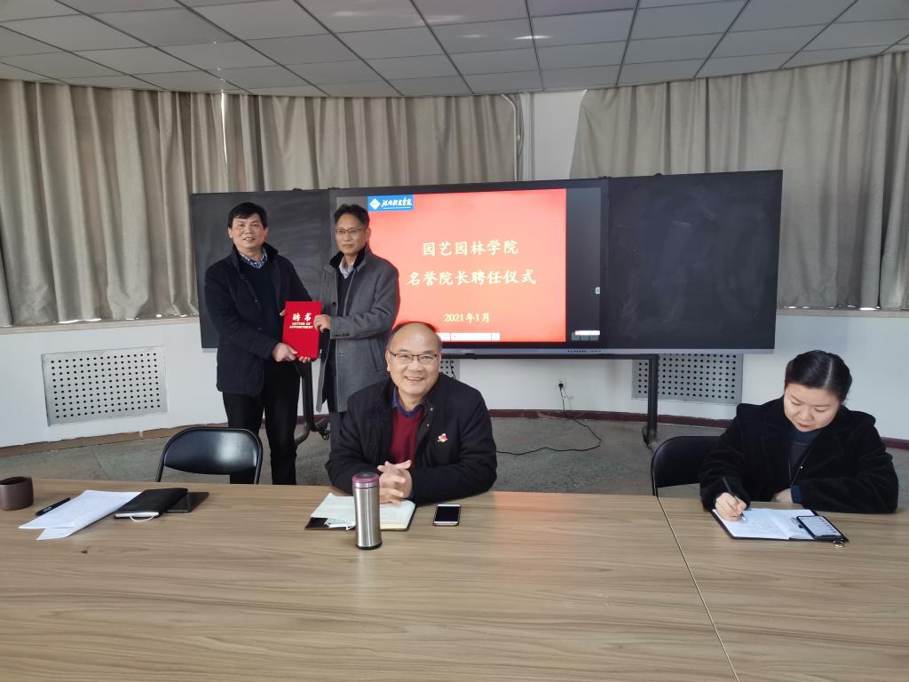 1月14日下午,园艺园林学院在实验楼A段会议室举行了聘任刘会超教授为我院名誉院长的仪式。学院党政班子成员和全体教职工参加了会议。会议由郜庆炉书记主持。