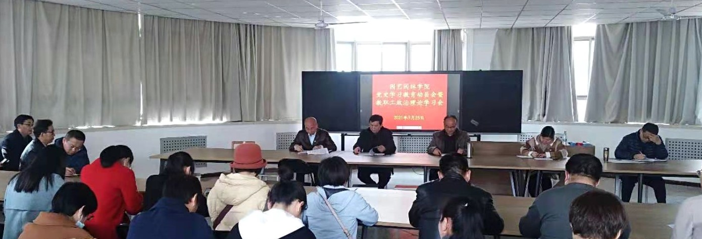 3月25日下午,园艺园林学院在实验楼A段一楼会议室召开党史学习教育动员会暨教职工政治理论学习会议。会议由党委书记郜庆炉主持,全体教职工参加。